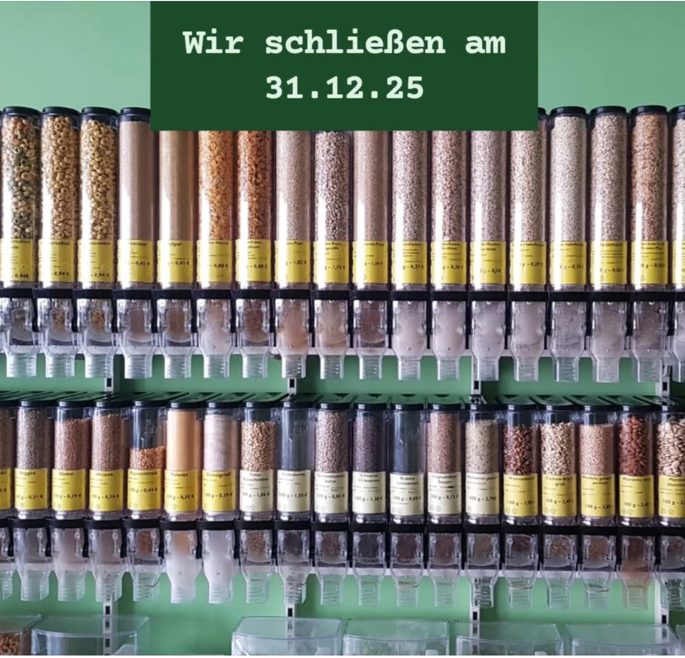 Zum 31.12.2025 werden wir unseren Laden aus persönlichen Gründen einstellen. Umso mehr wünschen wir uns, dass die Idee des verpackungsfreien Einkaufens in der Region weiterlebt und gelebt werden kann.